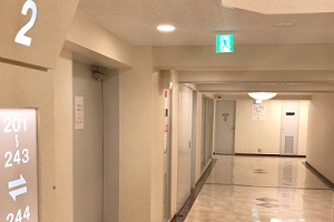 ❹右奥に進むとエレベーターホール