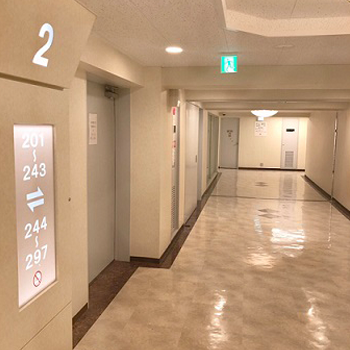 - ❹右奥に進むとエレベーターホール